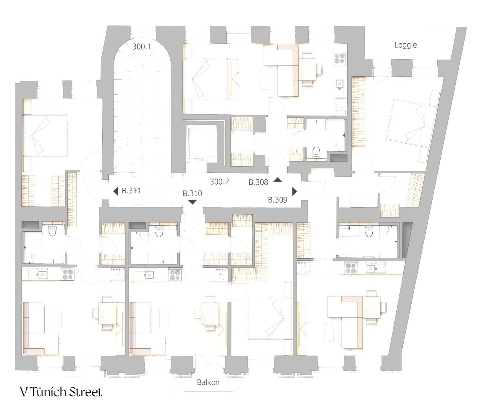309 | 3rd floor | 2+kk | 54,6 m2 | 5,8 m2 | 52,5 m2 | in preparation | Download | |