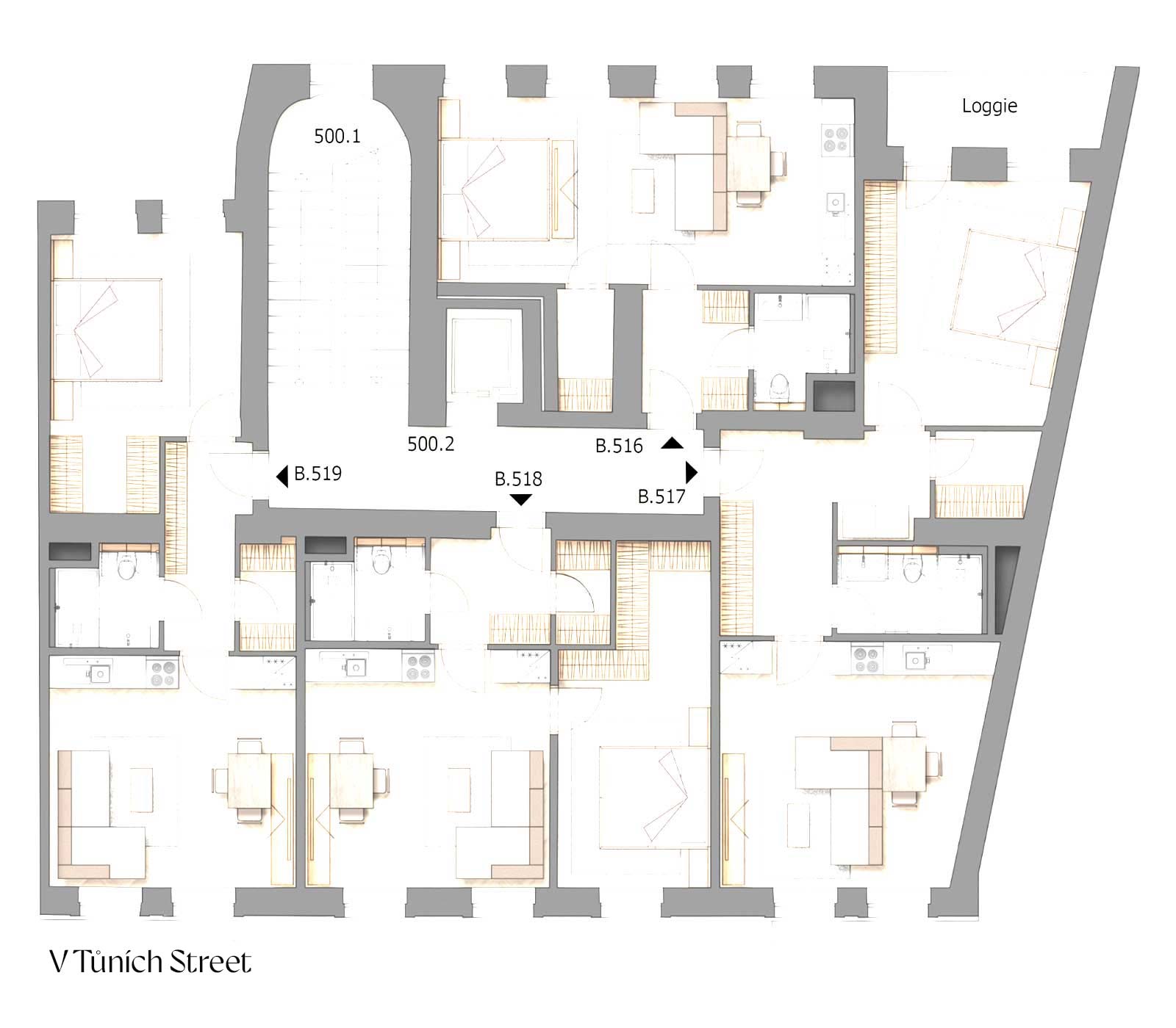 519 | 5th floor | 2+kk | 47,5 m2 | – | 46,0 m2 | in preparation | Download |