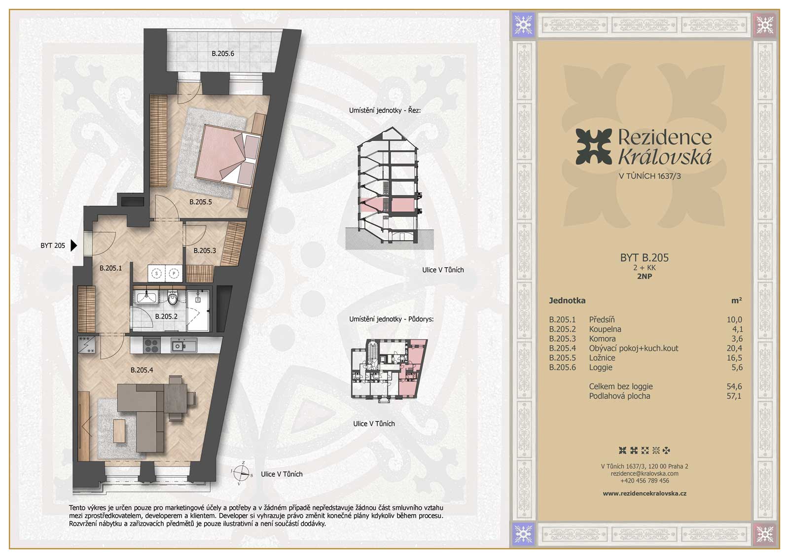 205 | 2.NP | 2+kk | 57,1 m2 | 5,6 m2 | 54,6 m2 | připravujeme | Stáhnout | |