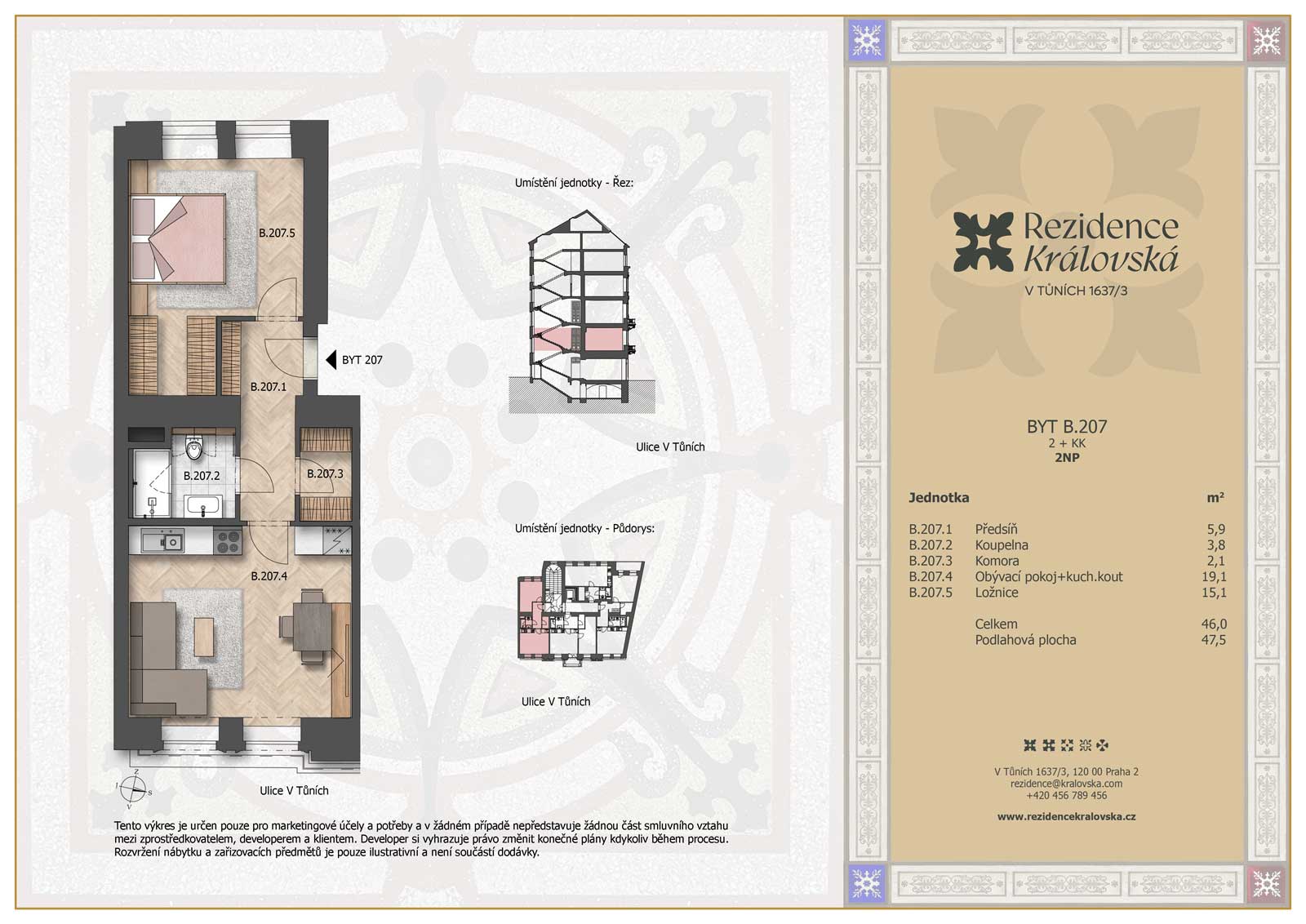 207 | 2.NP | 2+kk | 47,5 m2 | – | 46,0 m2 | prodáno | Stáhnout | |