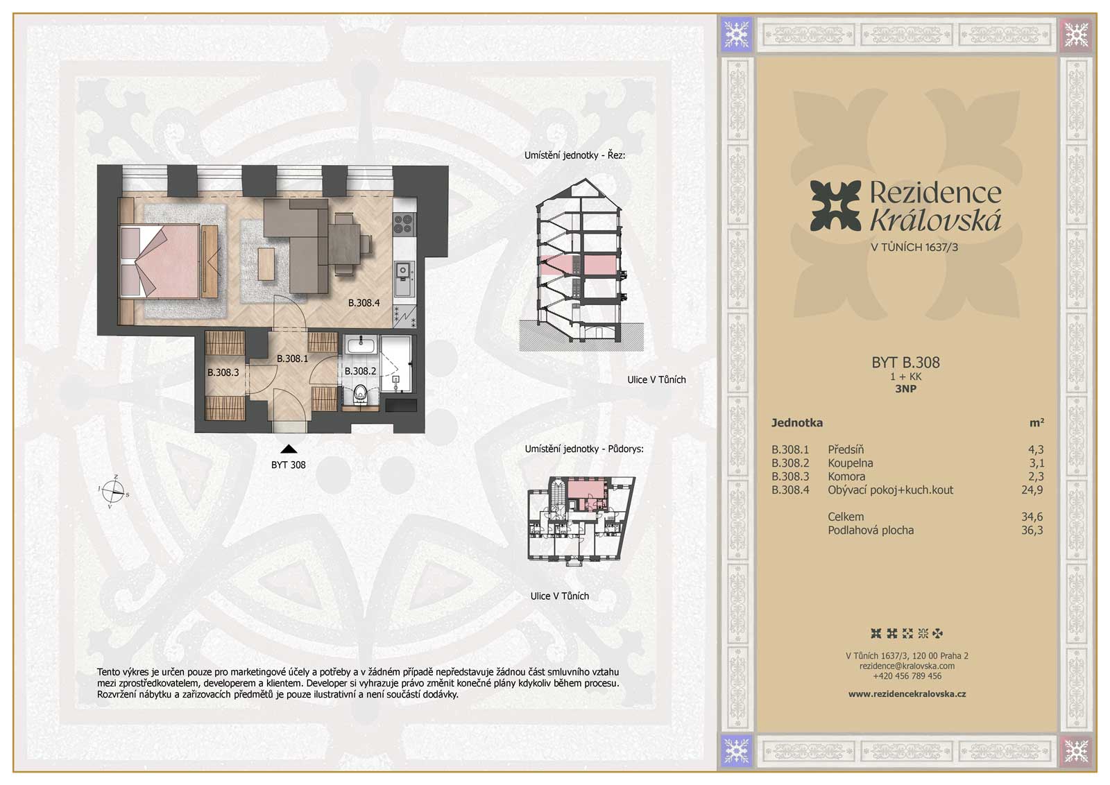 308 | 3.NP | 1+kk | 36,3 m2 | – | 34,6 m2 | připravujeme | Stáhnout | |