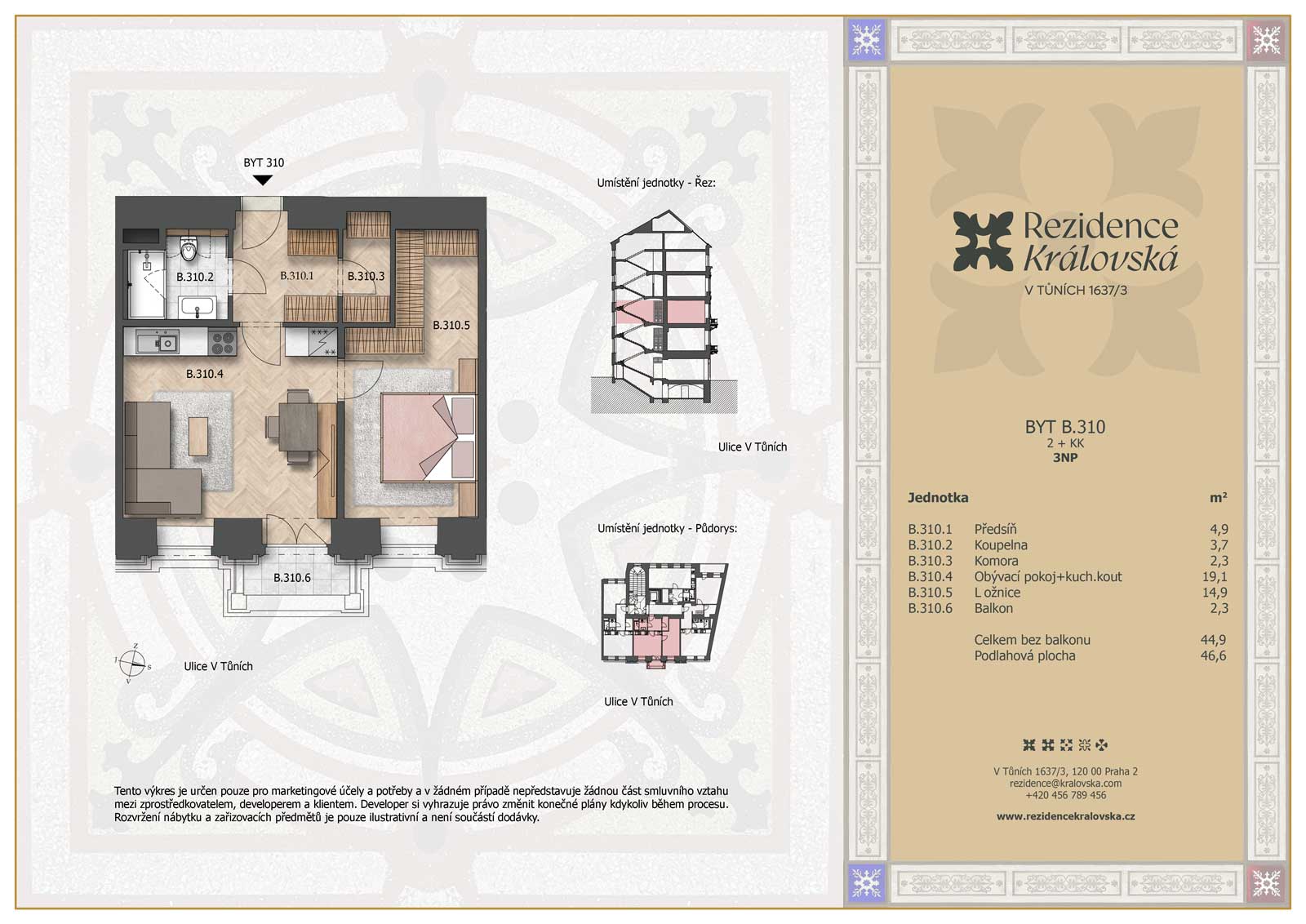310 | 3.NP | 2+kk | 46,6 m2 | 2,3 m2 | 44,9 m2 | prodáno | Stáhnout | |