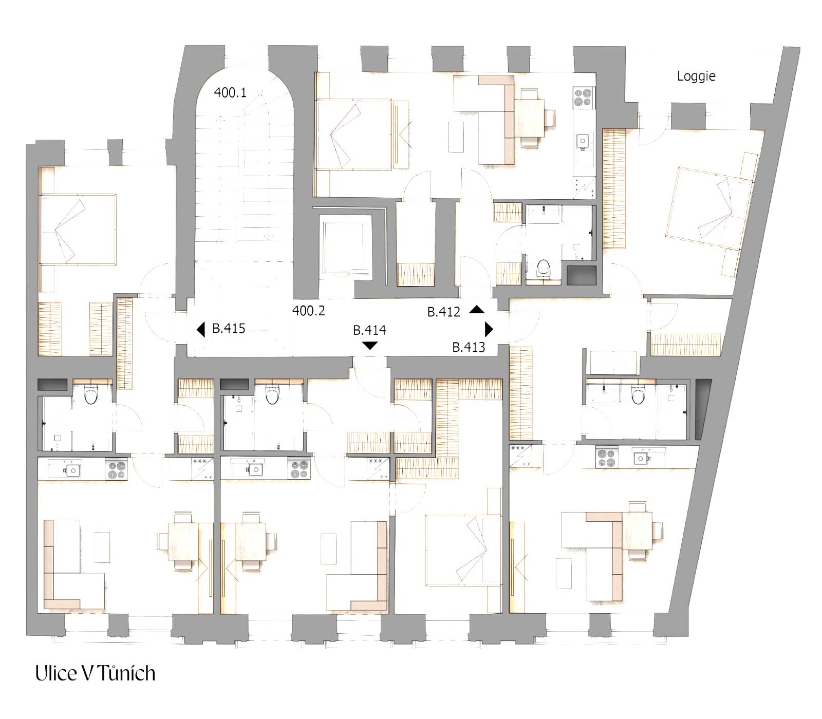 415 | 4.NP | 2+kk | 48,3 m2 | – | 46,7 m2 | připravujeme | Stáhnout | |