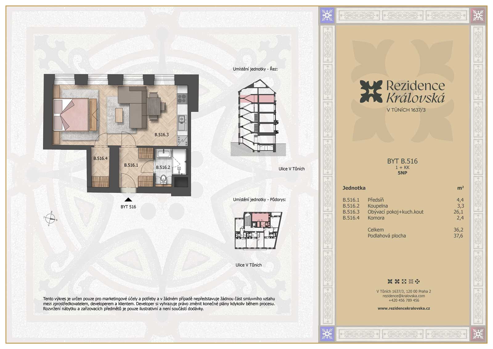 516 | 5.NP | 1+kk | 37,6 m2 | – | 36,2 m2 | připravujeme | Stáhnout | |