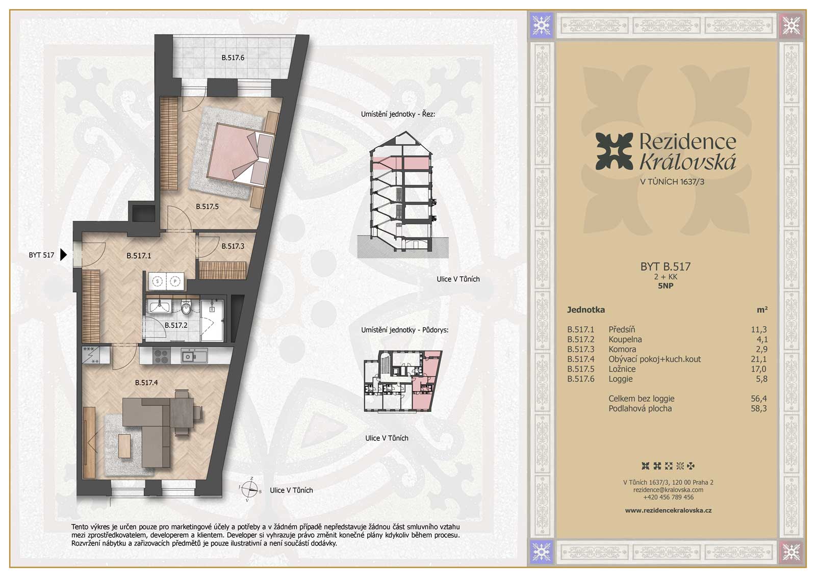 517 | 5.NP | 2+kk | 58,3 m2 | 5,8 m2 | 56,4 m2 | prodáno | Stáhnout | |