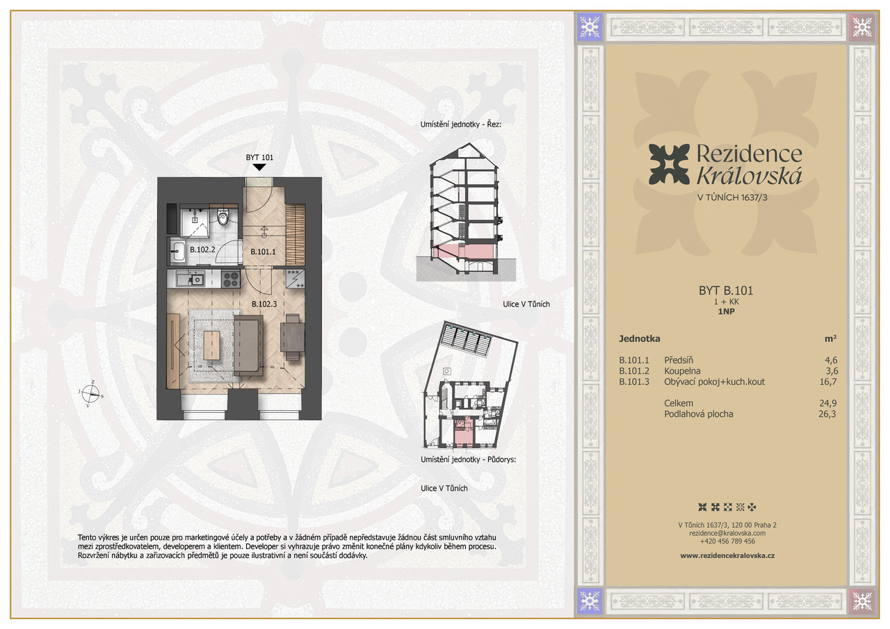 101 | 1.NP | 1+kk | 26,3 m2 | – | 24,9 m2 | prodáno | Stáhnout | |
