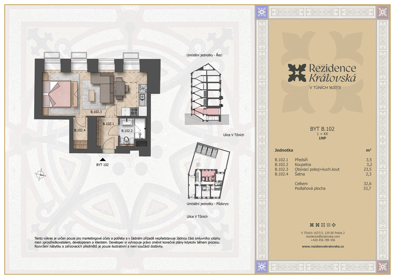 102 | 1.NP | 1+kk | 33,7 m2 | – | 32,5 m2 | připravujeme | Stáhnout | |