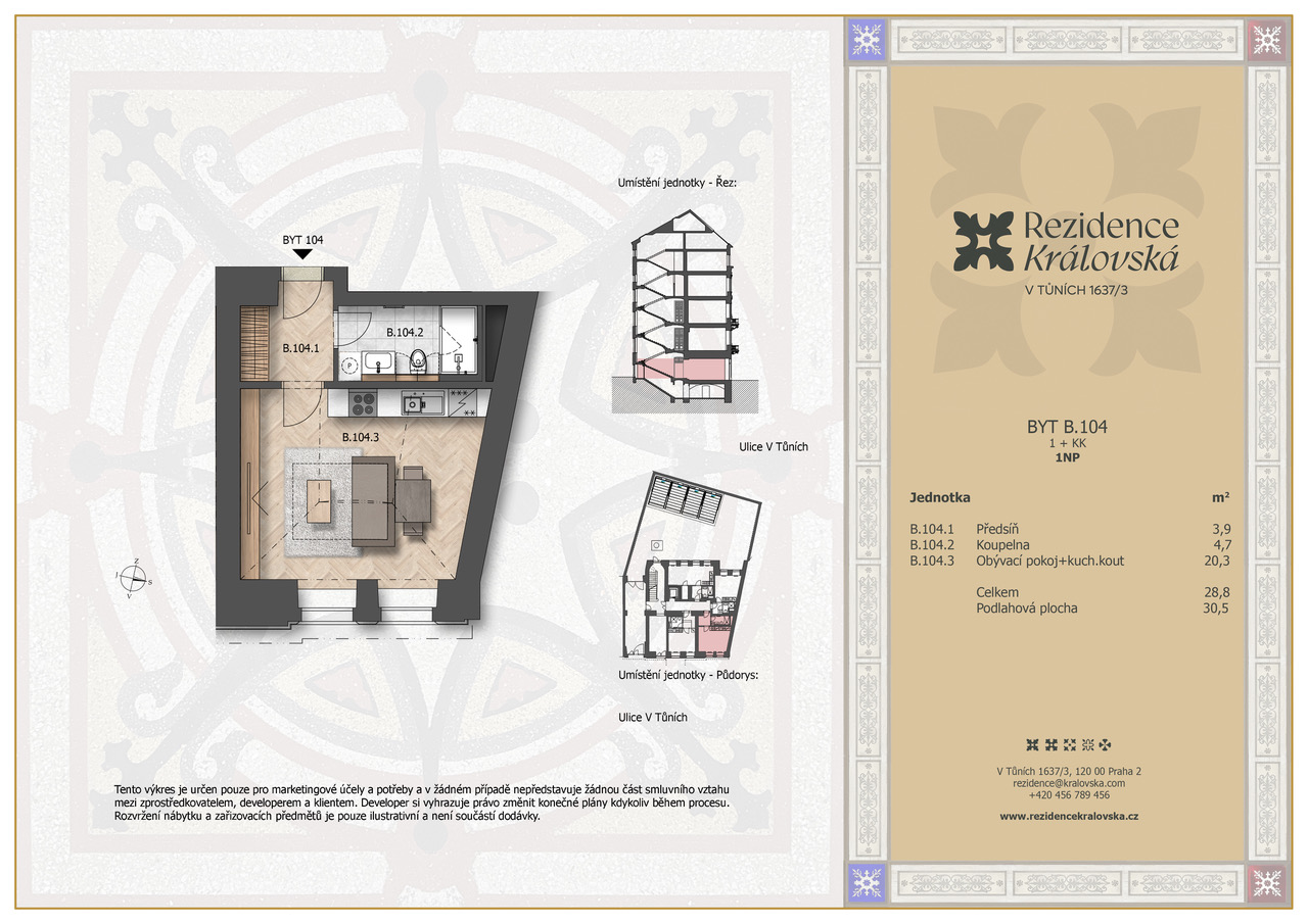 104 | 1.NP | 1+kk | 30,5 m2 | – | 28,8 m2 | prodáno | Stáhnout | |